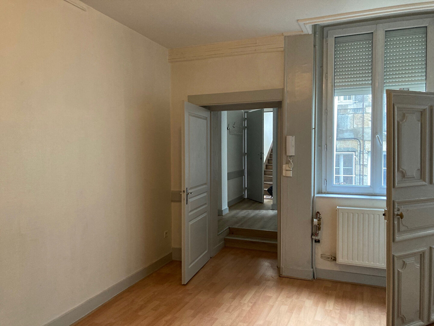 A louer, bel appartement de 3 pièces situé au 20 Place Marulaz à Besançon. Cet appartement comprend une entrée, un WC séparé, un salon lumineux, un dégagement, une kitchenette en cours d'installation avec une cheminée d'ornement, une chambre séparée avec placards/étagères, une deuxième chambre avec dressing, une salle d'eau équipée d'une cabine de douche, d'un lavabo et d'une prise pour machine à laver. Voir tous les appartement à louer dans la ville de Besancon. Le chauffage est individuel électrique et les fenêtres sont en double vitrage avec des ouvrants battants en PVC. L'appartement est libre immédiatement.
