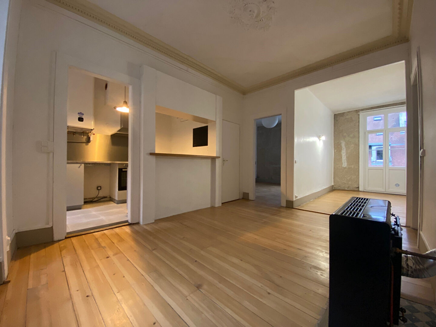 Rue Péclet, 2° étage, CENTRE VILLE, Appartement de charme de 69m² se composant d'une spacieuse entrée, cuisine équipée ouverte sur séjour avec bar séparatif, salon avec balcon, 2 chambres, chauffage individuel mixte (radiateurs gaz sur pied + radiateurs électriques à économie d'énergie, double vitrage, grenier. Le logement est très agréable et lumineux, idéal pour un jeune couple ou célibataire branché. Nécessite un rafraichissement des peintures en plafonds et murs. Demeure de beaux caractères ancien tels que des boiseries, des parquets, de la pierre apparente et des cheminées. L'environnement est bruyant car deux bars sont implantés en pied d'immeuble. En résumé, une très belle opportunité d'un appartement de caractère avec un balcon, fait rare pour le secteur avec quelques rafraîchissements à prévoir.