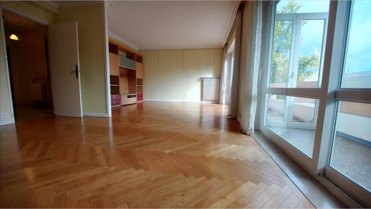 L’étage se compose de 3 chambres avec dressing et rangements (12,51m² + 18m² + 12,48m²), des WC séparés, une salle de douche et une salle de bains. Vous pourrez également profiter d'un balcon fermé. Une partie de l’appartement donne directement sur un jardin, avec une grande pièce de 26,76 m² comprenant des branchements pour une cuisine. Une cave et 2 garages fermés dans la copropriété sont inclus.