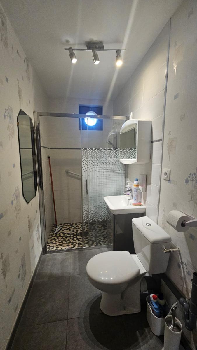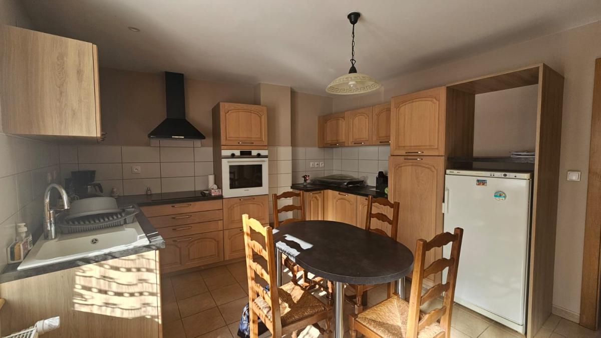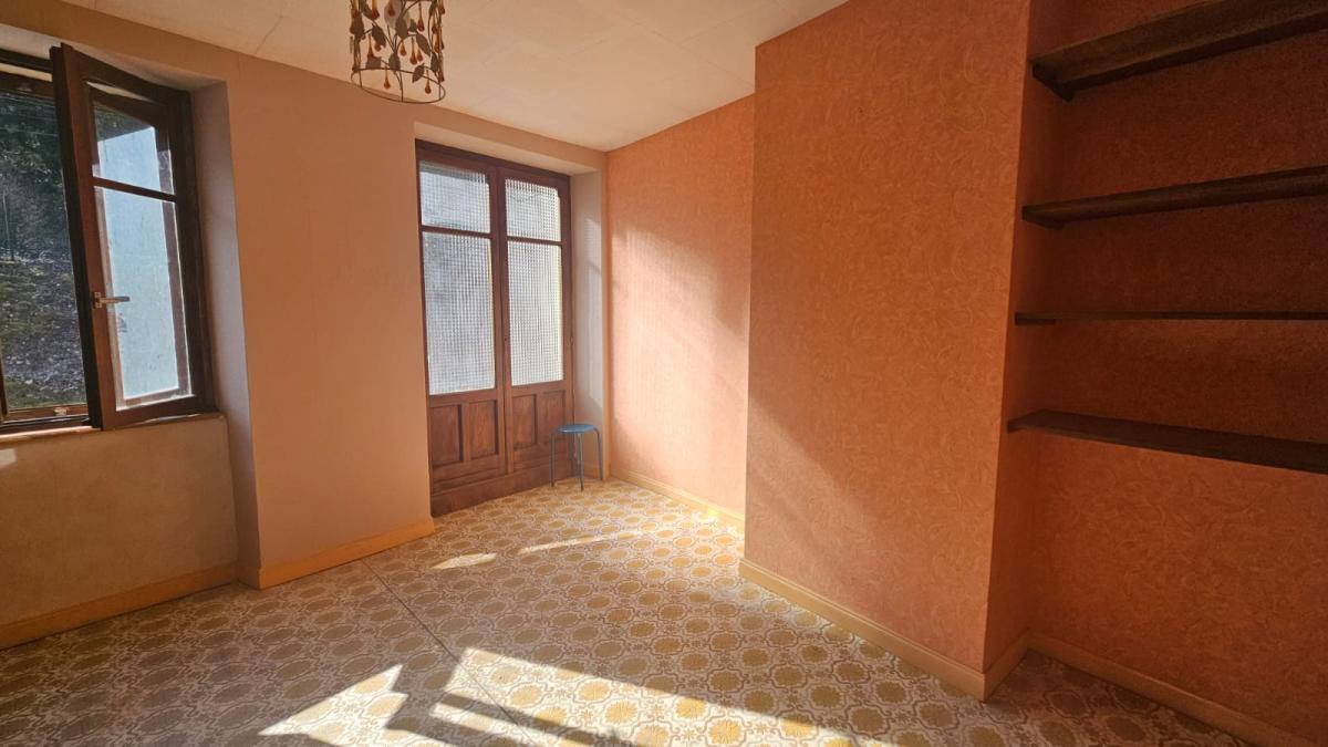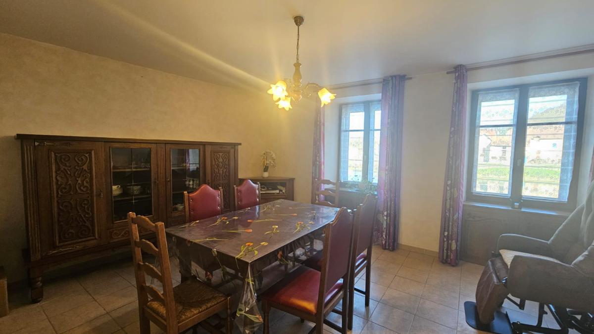 A PAYS DE CLERVAL, maison mitoyenne en grande partie rénovée. Au rez-de-chaussée, vous trouverez une cuisine aménagée et équipée, un espace salon avec une vue dégagée sur le Doubs, une salle de douche avec WC, entièrement rénovés.