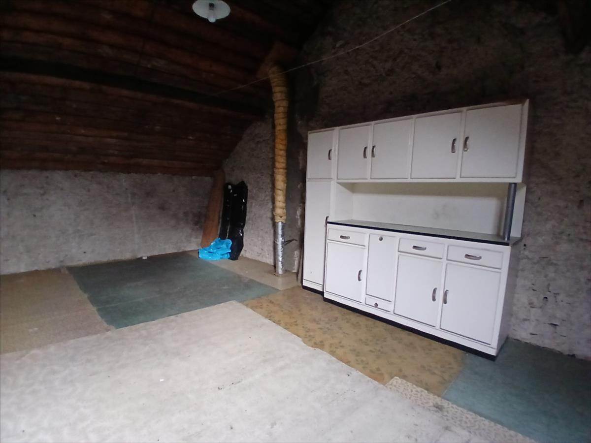 À l'étage, une grande chambre mansardée et une partie de comble aménageable vous offrent de belles possibilités d'aménagement. La maison dispose également d'une cave en sous-sol, d'une chaufferie avec chaudière et cuve, ainsi que d'un garage accolé à la maison avec porte motorisée.