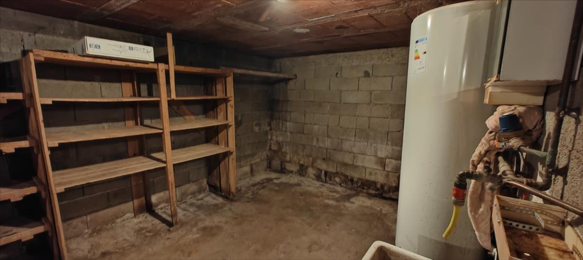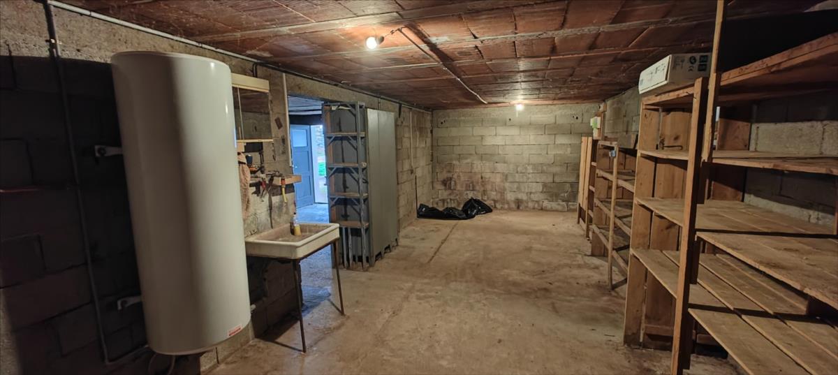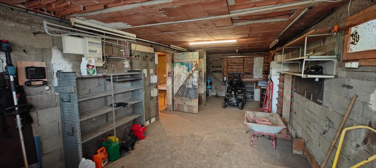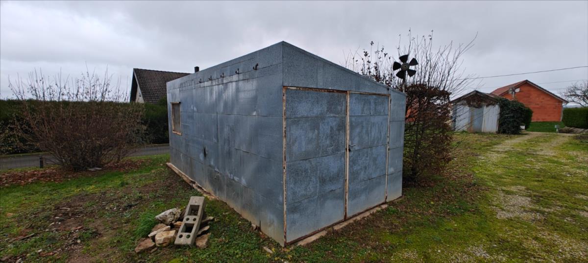 Un sous sol de plain pied en parpaing béton et dalle, comprenant un garage, une cave et atelier, et à l'étage un chalet, cloison bois, bardage extérieur fibrociment et toiture rénovée en 2016.