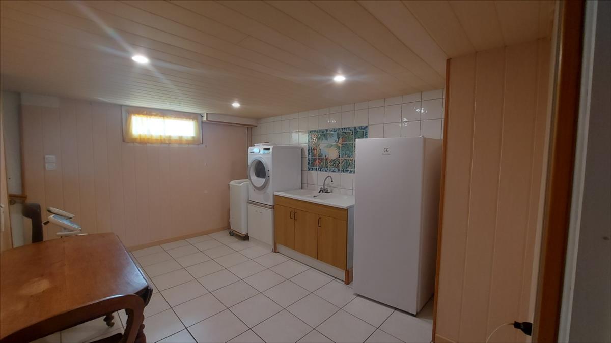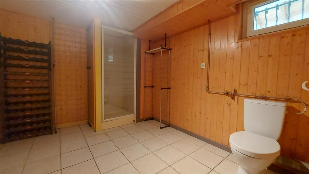 Le sous-sol, parfaitement organisé, propose une lingerie, une chambre, une chaufferie, une salle de douche avec WC et un garage avec porte motorisée. La propriété est parfaitement entretenue, tant à l'intérieur qu'à l'extérieur, avec un tableau électrique refait à neuf, des volets motorisés, des fenêtres en PVC et une aspiration centralisée. La toiture a été refaite en 2013, la chaudière est au gaz de marque CHAPEE et le moteur du portail a été changé cette année. La taxe foncière s'élève à 541 € pour l'année 2024.