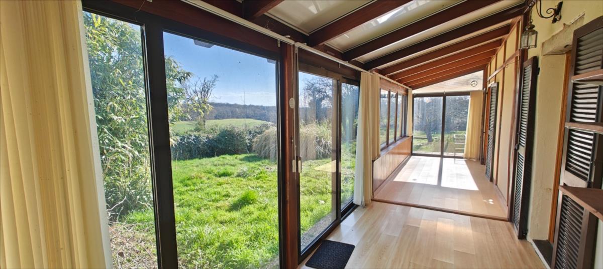 La maison se compose d'une entrée donnant sur un salon chaleureux avec un insert, d'une cuisine équipée avec coin repas, d'une véranda lumineuse, d'une salle de douche, d'un wc et d'une chaufferie. A l'étage, vous trouverez trois chambres dont une en enfilade, offrant un espace de vie confortable et fonctionnel.