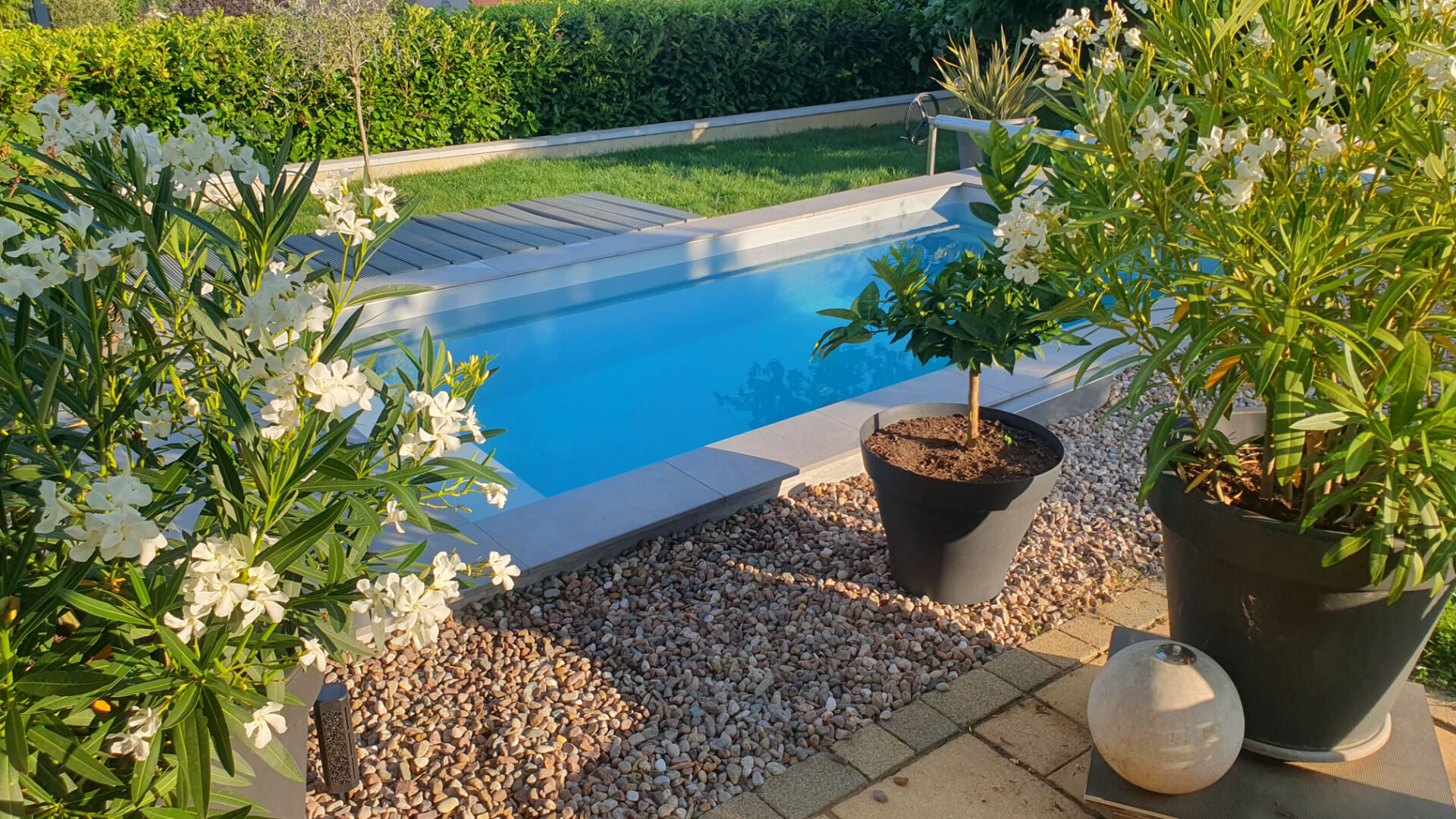 Une mini piscine (ni taxe ni impôts) vous attend pour profiter pleinement des beaux jours, entourée d'un jardin soigneusement aménagé, de terrasses idéales pour vos repas d'été ou vos moments de repos.