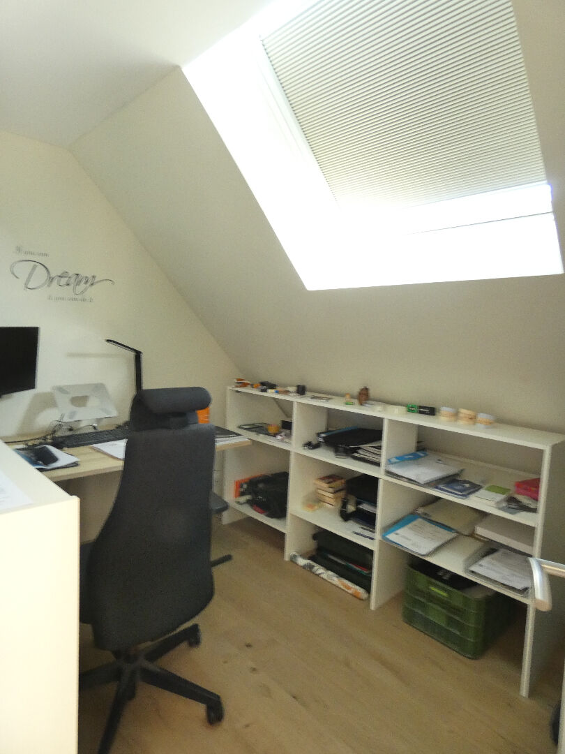 L'étage abrite une belle suite parentale avec son dressing et sa salle d'eau, puis, séparées par quelques marches pour plus d'intimité, deux autres chambres, un bureau et enfin une grande salle de bains. Garage attenant et cave.