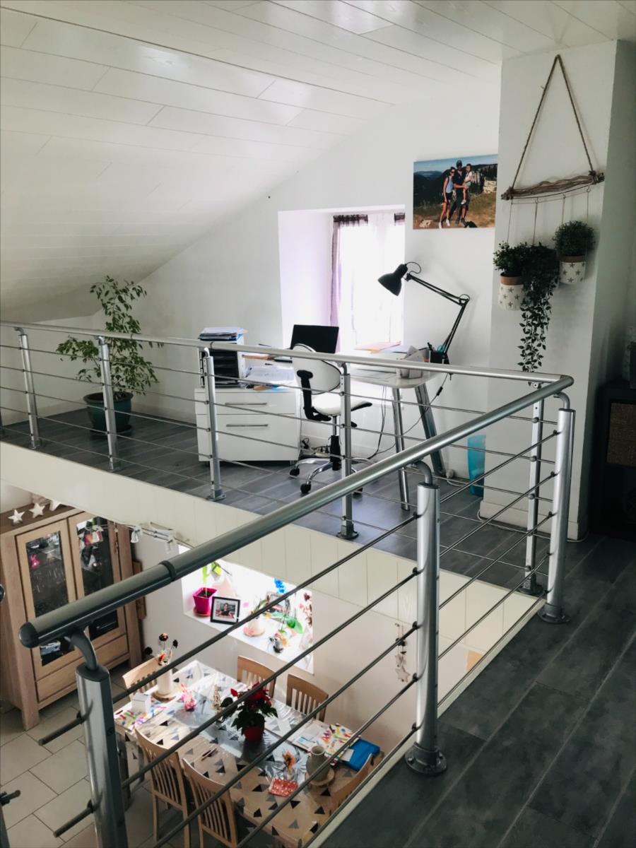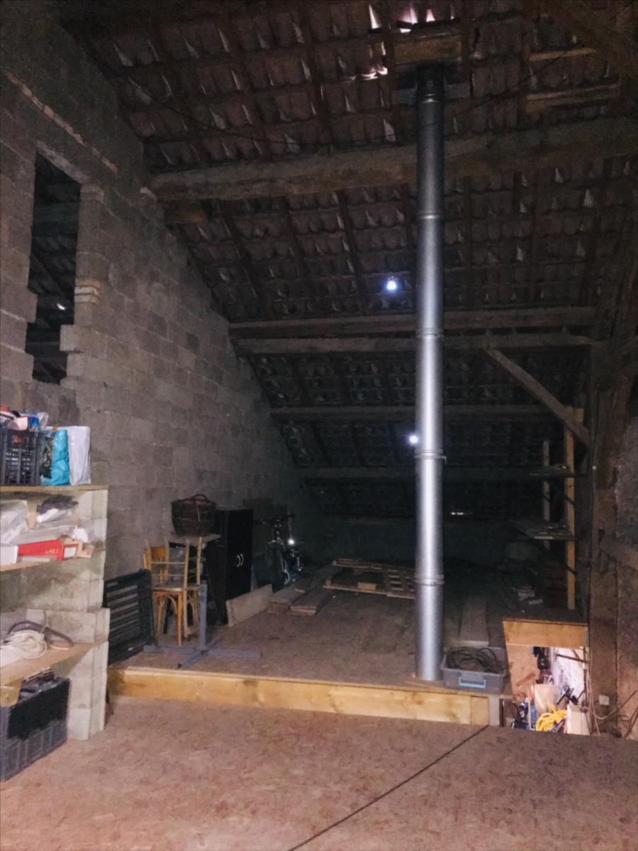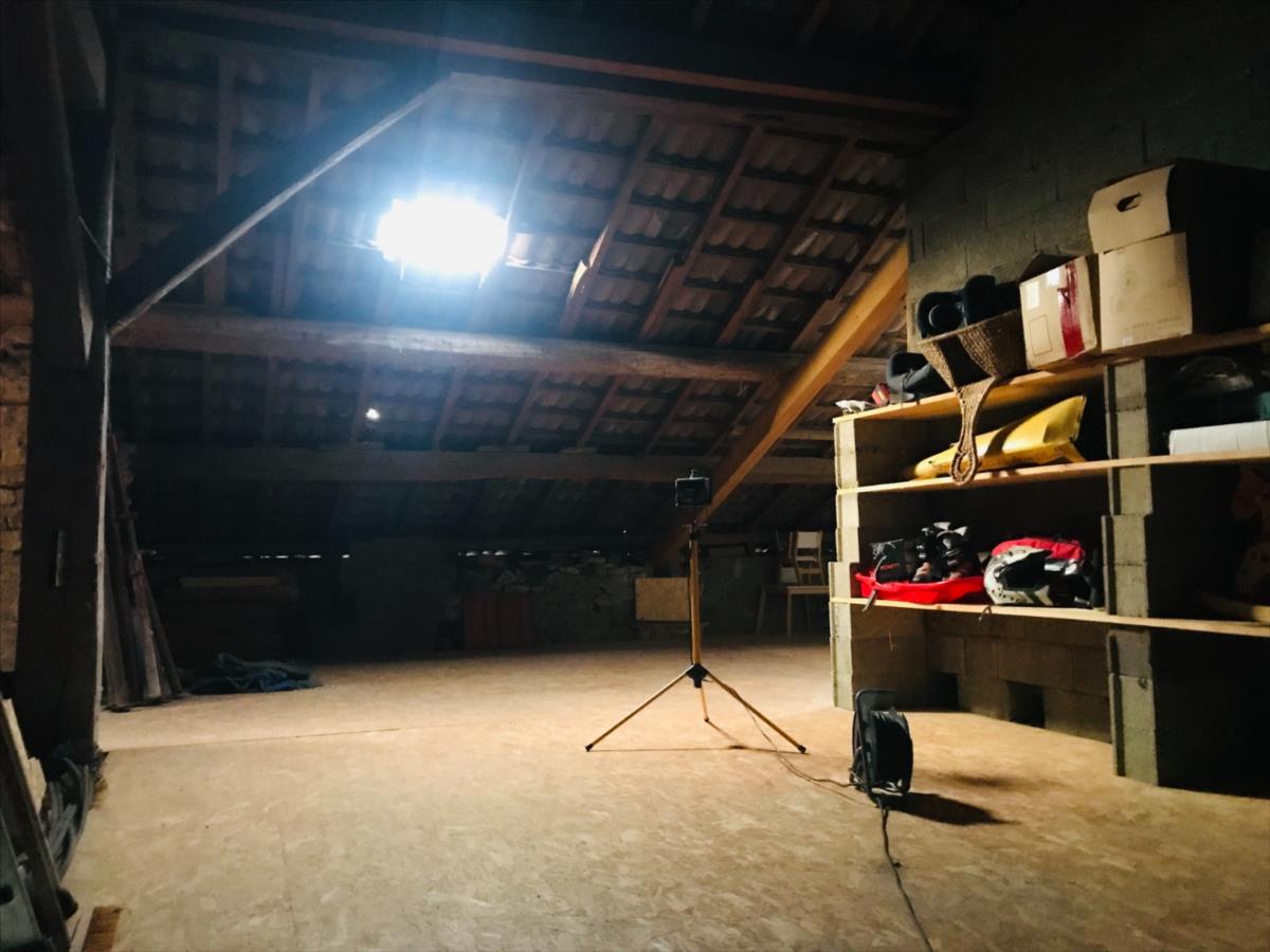 A l'étage, un grand espace mezzanine ouvert, aujourd'hui à usage de salon, une salle de bain, et une très grande chambre pouvant être divisée en deux ou servir de salle de jeux/sport.