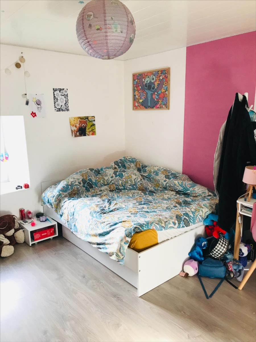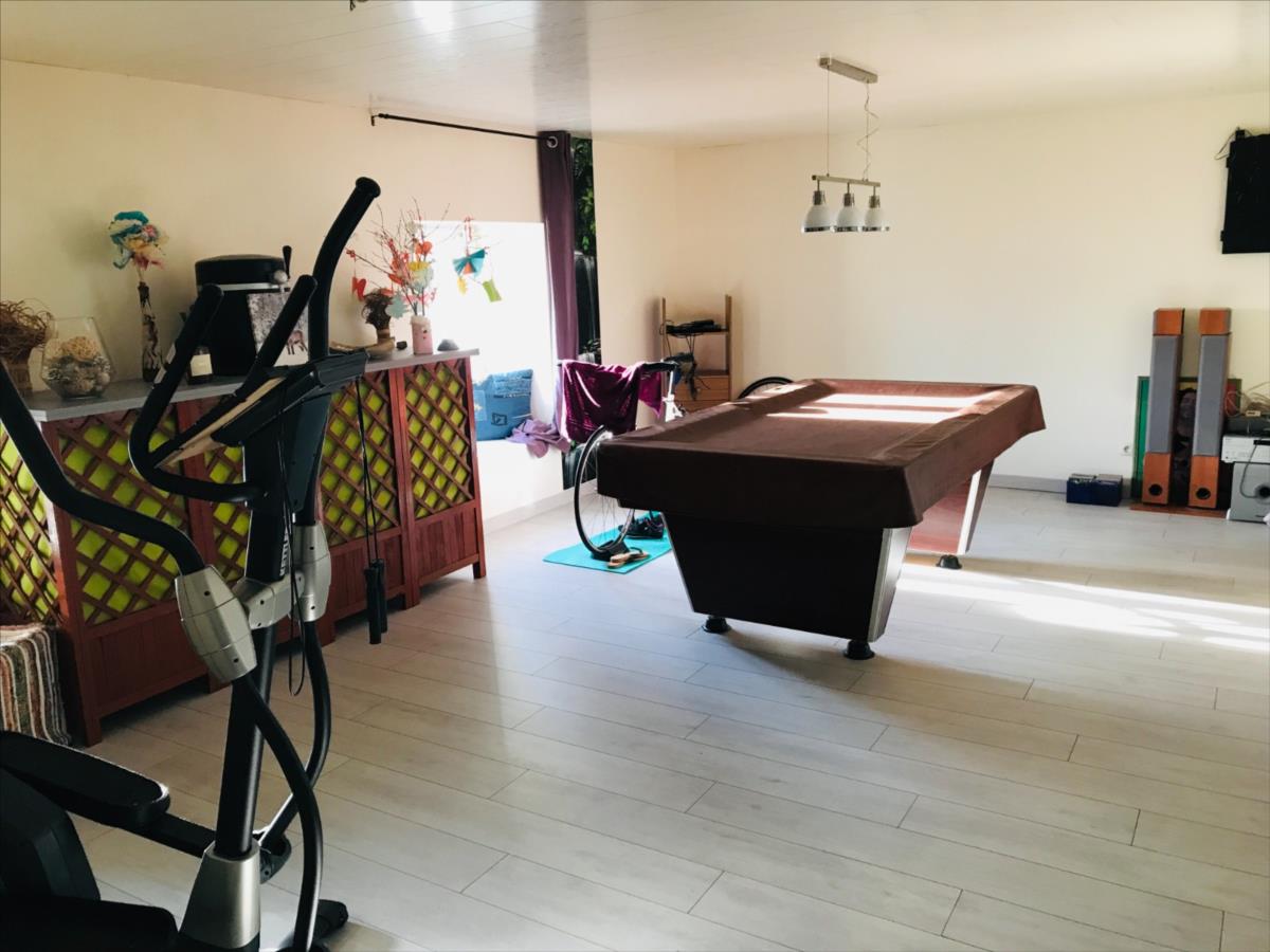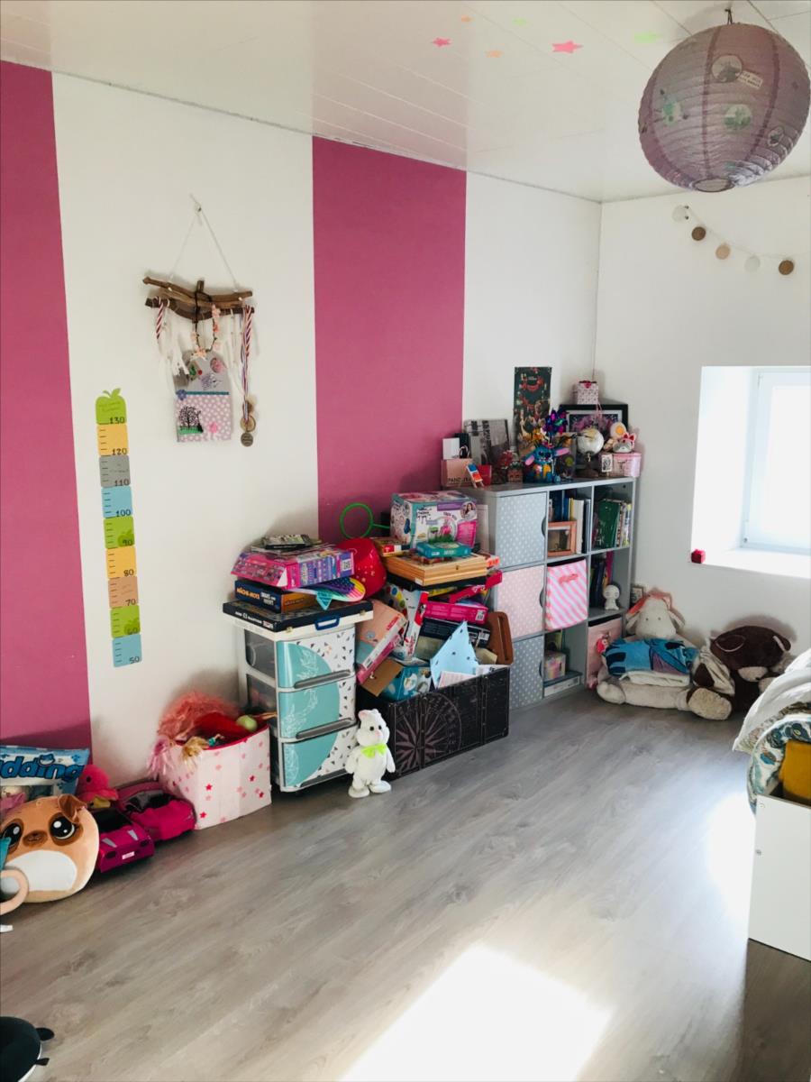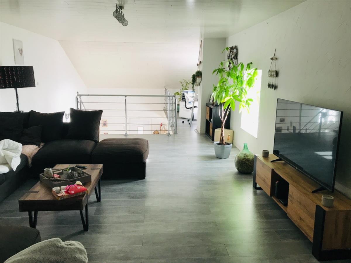 A l'étage, un grand espace mezzanine ouvert, aujourd'hui à usage de salon, une salle de bain, et une très grande chambre pouvant être divisée en deux ou servir de salle de jeux/sport.