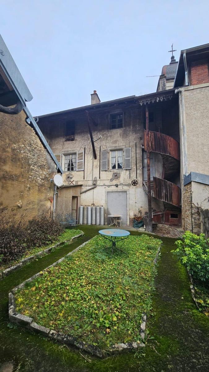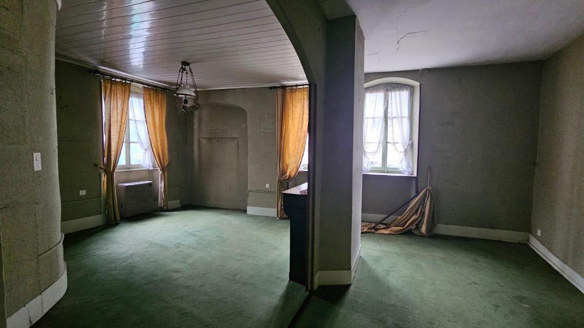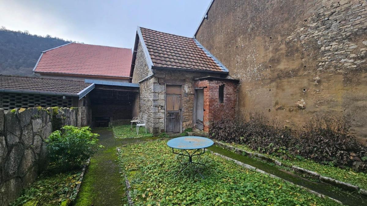 A PAYS DE CLERVAL, dans le centre historique, grande maison mitoyenne à rénover entièrement, repartie sur trois niveaux avec local au rez-de-chaussée. Au rez-de-chaussée vous trouverez un local d'environ 100 m² avec nombreuses vitrines permettant une belle visibilité. Au 1er étage, un espace cuisine, salon / séjour avec cheminée, deux chambres, dégagement, salle de bain avec WC Au 2ème étage, une chambre, une pièce vétuste pouvant faire office de chambre, salon, cuisine dégagement, bureau. Au 3è étage : grenier Une cour intérieure complète ce bien avec un garage privatif. Possibilité de faire deux logements avec accès indépendants. Absence de système de chauffage central. Ce bien nécessite d'importants travaux de rénovation.