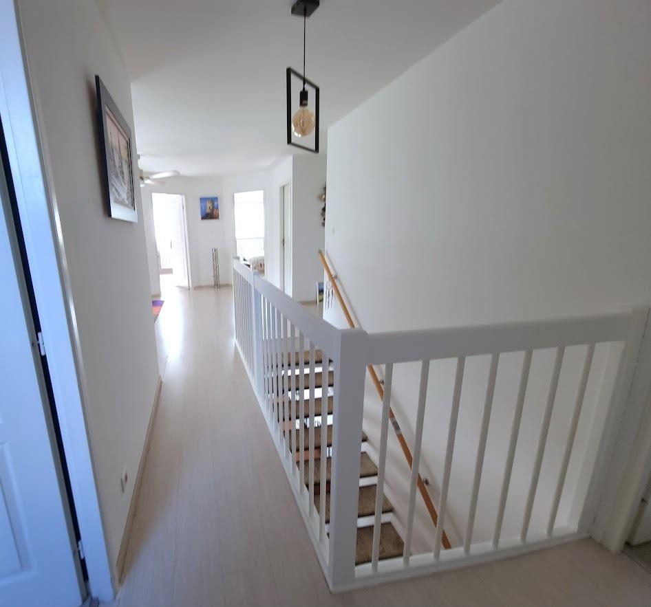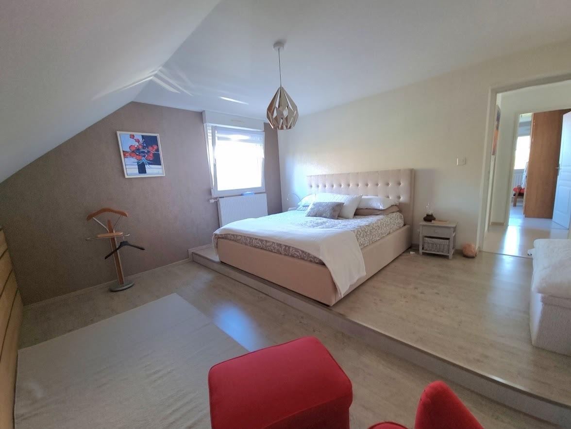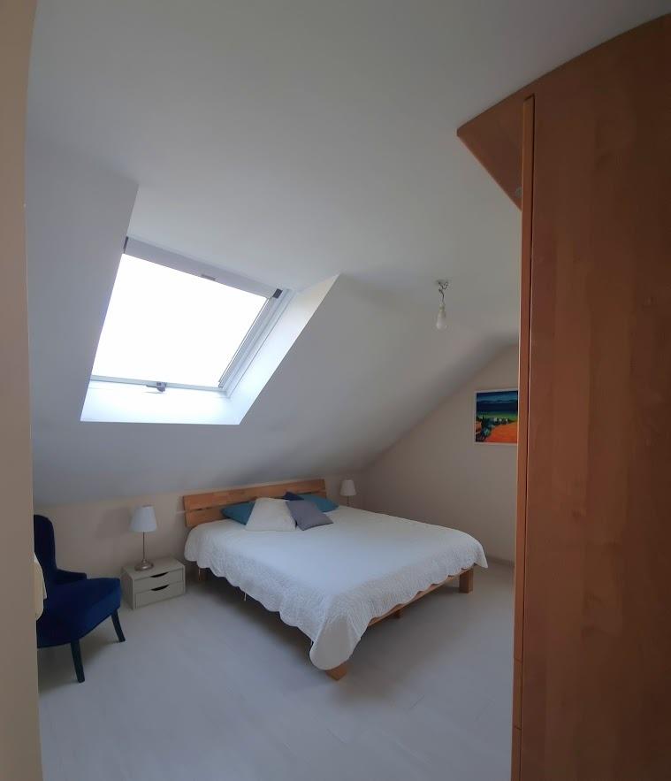 A l'étage se trouvent 4 belles chambres, une salle de bain avec baignoire et douche , un wc et une grande buanderie, grenier.
