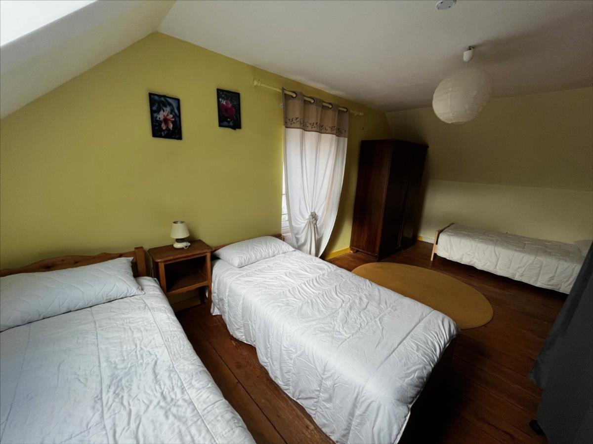 À l’étage, accessible par un bel escalier en chêne, 3 chambres, une salle de bains familiale, le tout sur un beau parquet massif d’origine.